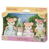 يتميز هذا الطقم الرائع لعائلة الغزلان بأب وأم وبنت وطفل صغير، كل منهم مزين بملابس جذابة بنقشات الزهور. يمتاز الأب والطفل بأجسام بلون الكاكاو وأذنين على شكل بتلات، بينما تمتلك الأم والبنت أجسام بلون الكراميل مع زينة الأذنين الزهرية. تم تصميم الطقم بشكل فريد مع نقوش وألوان خاصة لكل دمية. الدمى الصغيرة صغيرة بما يكفي لوضعها على أوراق الزنبق أو حملها في حاملة الطفل الصغيرة المرفقة بالطقم، مما يسمح باللعب التفاعلي. لكل شخصية في العائلة شخصيتها وهواياتها الخاصة، مما يثري تجربة اللعب. ماريوس، الأب، يحب التنزه في الغابة، بينما تتمتع بريمروز، الأم، بالإبداع وتملأ البيت بالأعمال اليدوية. صوفيا، البنت، شاعرة وعداءة سريعة، وكاي، الطفل، يحب مراقبة الطبيعة.