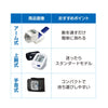 - الأبعاد الخارجية: 230 مم (عرض) × 217 مم (طول) × 228 مم (عمق). - الوزن: حوالي 1600 جرام (دون البطاريات). - توافق محيط الذراع: من 170 مم إلى 320 مم. - بيئة التشغيل: +10°C إلى +40°C، 30% إلى 85% رطوبة نسبية. - مصدر الطاقة: 4 بطاريات قلوية AA (DC6V) أو محول تيار مباشر مخصص (AC100V 50/60Hz). - حماية من الصدمات الكهربائية: معدات من الفئة الثانية (مزوَّدة بالطاقة الداخلية عند عدم استخدام محول التيار المتردد)، قسم تثبيت من النوع B.