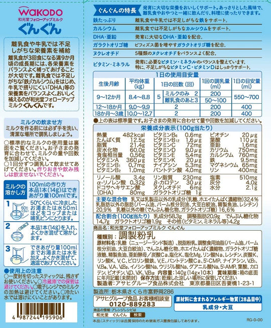 حليب ووكودو المتابعة 14غ × 10 عبوات للأطفال من 9 أشهر إلى 3 سنوات مع الحديد والكالسيوم وDHA