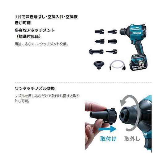 هذا الطراز المتعدد الاستخدامات 18 فولت مصمم لأداء مهام النفخ، التضخيم، والتفريغ، كل ذلك في وحدة واحدة مريحة. يأتي مع ملحقات متنوعة كأدوات قياسية، مما يجعله أداة متعددة الوظائف لمجموعة متنوعة من التطبيقات. نظام استبدال الفوهات بلمسة واحدة يتيح تركيب وإزالة الفوهات بسرعة وسهولة - فقط ادفع للداخل للتثبيت واستدر للإزالة.