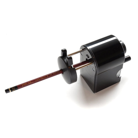 This manual pencil sharpener is designed for both office use and school children, offering a stable and smooth sharpening experience. Its compact size and simple black design make it a practical addition to any workspace or classroom, ensuring it fits easily without taking up much space.