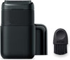 This product is a compact, mobile shaver equipped with two blades that float and sink to adhere closely to the skin. It features a mesh blade of the highest model to catch the beard firmly, and an S-shaped trimmer blade to avoid leaving a shave. The shaver is designed with an advanced skin-friendly micro comb, with a rounded shape that covers the blades for a more gentle and comfortable feel on the skin. Despite its small size, it delivers twice the cutting power compared to conventional mobile shavers, ensuring a powerful deep shave.