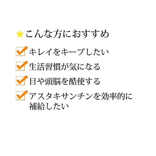 DHC's Astaxanthin is a softgel capsule packed with a high concentration of astaxanthin, a carotenoid pigment that gives shrimp, crab, and salmon their red color. This pigment is known for its powerful antioxidant properties, approximately 1,440 times greater than that of vitamin E. The raw material used is hematococcus algae, which is rich in astaxanthin and is the source of the body color of salmon and other fish. One capsule per day contains 9 mg of astaxanthin, which is difficult to supplement through daily diet alone. Please consume with water or lukewarm water.