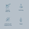 This cleansing oil is free from fragrances, colorants, parabens, mineral oils, and petroleum surfactants. It is formulated with natural ingredients, primarily featuring high-quality olive virgin oil, ensuring a formulation that is gentle yet effective on the skin.