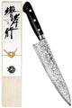 The knife comes in a beautifully crafted paulownia wood box, making it an ideal gift. The packaging includes domestic Japanese paper with gold and silver patterns and custom-made mizuhiki from Iida City, known for its mizuhiki (a type of Japanese silk ribbon). The mizuhiki is tied in the "awaji-knot" style, suitable for any occasion.