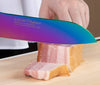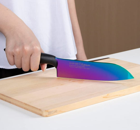 The Kasumi Titanium Coated Kitchen Knife is a meticulously crafted tool designed by skilled artisans to deliver exceptional sharpness. The blade is made from molybdenum-vanadium steel, known for its strong and sharp cutting edge. This is further enhanced with a titanium coating, which provides excellent abrasion resistance, ensuring the blade remains durable and maintains its sharpness over time. This all-purpose knife is versatile and can be used for cutting meat, fish, vegetables, and more.