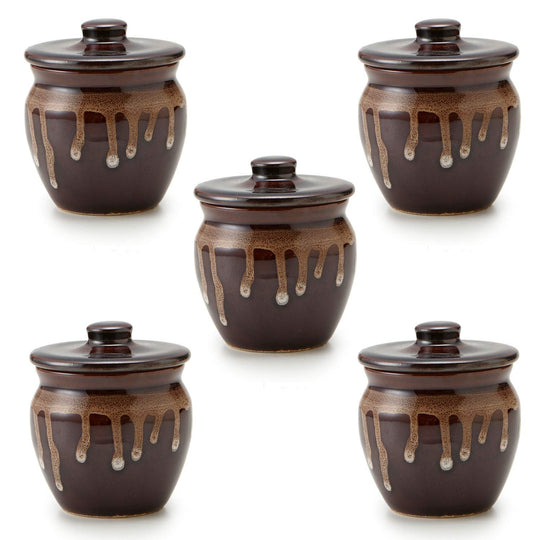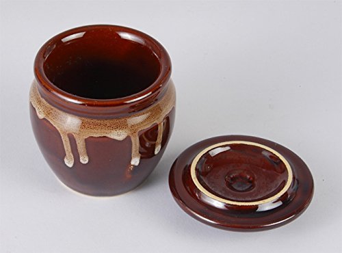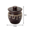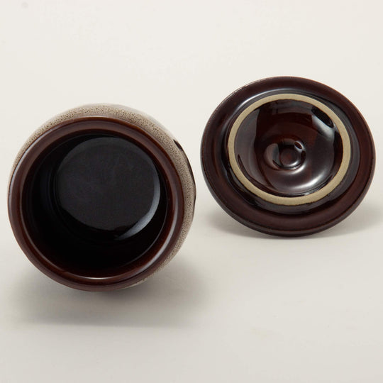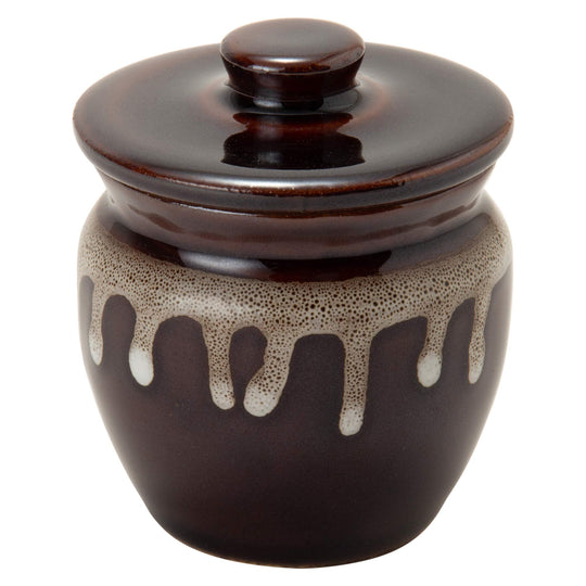 This traditional ceramic jar, crafted in Japan, features a charming, chunky design and is finished in classic Mino ware colors. It's perfect for storing a variety of items such as pickled plums, sauces, and miso, combining both functionality and aesthetic appeal.