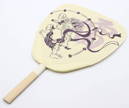 Traditional Bamboo Uchiwa Fan with Wind and Thunder God Design 6115