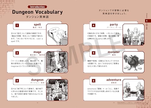 Learn English with famous scenes from "Dungeon Mei"! This book offers a fun and engaging way to learn English through iconic scenes from the critically acclaimed anime "Dungeon Mei," which has sold over 14 million copies and is currently receiving rave reviews. While enjoying the story, you will naturally pick up useful phrases that are applicable not only in the dungeon but also in real-world situations. The lines from the manga are used to fill in the gaps in your English learning, allowing you to practice English conversation as if you were taking a quiz, making it easier to remember.