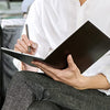 This product is a dedicated cover designed specifically for the e-Paper QUADERNO A5 size (FMV-DPP02, FMV-DPP04). It is not compatible with the e-Paper QUADERNO A4 size. The cover is designed to store and carry the electronic paper QUADERNO A5 size. It features a simple and luxurious notebook design that is suitable for business scenes. Additionally, the cover is equipped with a pen holder and a business card holder for added convenience.
