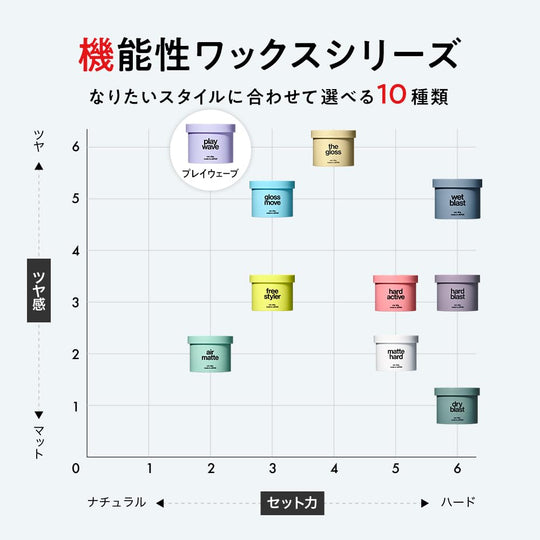 The LIPPS Hair Wax series is a professional-grade styling product developed from the salon expertise of "LIPPS hair" salons. Designed with a focus on functionality, ease of use, and container design, this hair wax is not only a tool for salon professionals but also a product tailored to resonate with Generation Z. Renewed in 2021, the series reflects the diverse values and social awareness of the younger generation. The "Play Wave" variant is specifically crafted for permanent wave styles, offering a perfect balance of shine and defined curl ridges. It ensures long-lasting, manageable waves with a natural texture that stays intact throughout the day. The name "Play Wave" embodies the idea of enjoying and experimenting with perm styles freely and creatively.