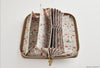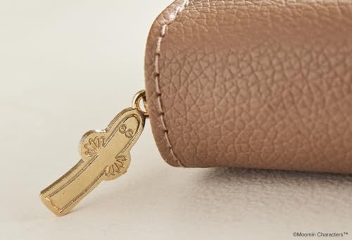 The Moomin long wallet is a stylish and chic accessory, now available in a new rose-brown color. This wallet is not only cute but also highly functional, designed with a slim and sleek appearance that offers excellent storage and organization. It features a rich leather-like fabric and rose brown color, creating an elegant finish that is perfect for mature women. The wallet is adorned with a one-point Little Mii stamping and a gnarled puller, adding a touch of charm to its design. The lining showcases a fun all-over pattern, making the search for hidden Moomins and their friends an enjoyable experience. The wallet is sized to fit comfortably in a woman's hand, making it easy to hold and use.