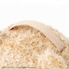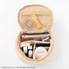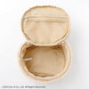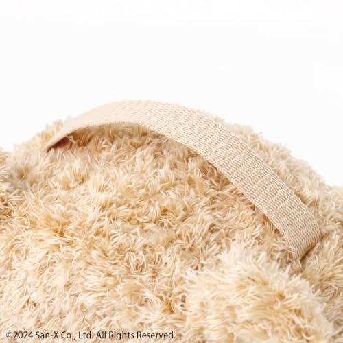 The Rilakkuma vanity pouch measures approximately 9 cm in height, 17 cm in width, and 14 cm in depth (not including ears). It features a double zipper for easy opening and closing, and a handle for convenient carrying. The pouch is made from a long, fluffy fabric and is adorned with the popular Rilakkuma character. The pouch includes movable dividers and a mesh pocket on the back of the lid.