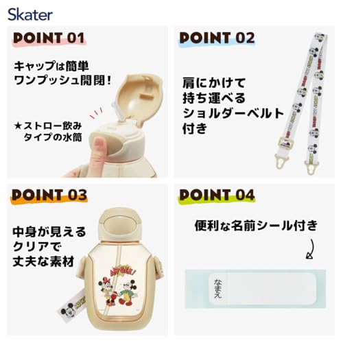 This product is a straw drinking water bottle, perfect for children learning to drink through a straw. It is made from durable and highly transparent saturated polyester resin, ensuring longevity and clarity. The bottle features a cap lock design that prevents the cap from returning when drinking, making it easy to use. It also has a push button for easy opening. The lightweight and compact design of the bottle makes it easy for even children to carry. It comes with a shoulder strap and a name sticker for personalization. The bottle also has a shock-absorbing cushion on the bottom for added durability. Please note that this bottle is not suitable for use in dishwashers or dishwashers/dryers.