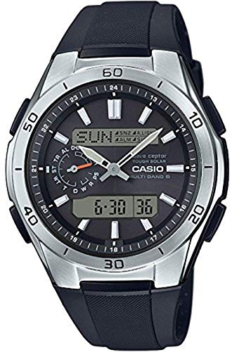 This solar radio-controlled watch with multi-band 6 is designed for men. It is compatible with standard radio waves from Japan, China, the U.S., and Europe. The watch features a reinforced water resistance o...