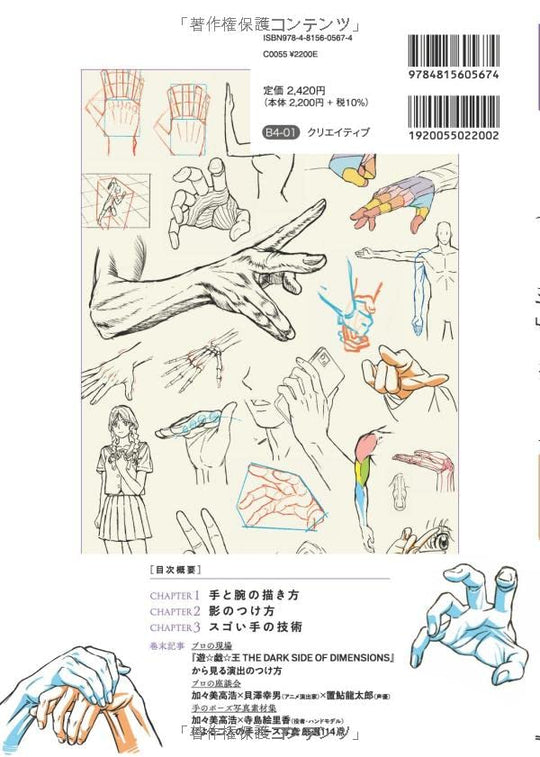 - KAPITEL 1: Wie man Hände und Arme zeichnet - KAPITEL 2: Wie man Schatten zeichnet - KAPITEL 3: Erstaunliche Handtechniken - Artikel am Ende des Buches: - Wie man die Richtung von "Yu-Gi-Oh! The Dark Side of Dimensions" schafft - Professionelle Diskussionsrunde - Zwei Handposen-Fotosammlungen
