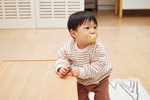 Der Sauger Stern ist ein Spitzenmodell, das für die Entwicklung schöner Zähne bei Säuglingen konzipiert wurde. Von Zahnärzten empfohlen, verfügt dieser Schnuller über eine einzigartige Saugform, die eine Stillbrustwarze nachahmt und perfekt in den Oberkiefer passt. Er unterstützt die korrekte Zungenbewegung während des Stillens, was wiederum die Muskulatur um den Mund herum entwickelt und zur Bildung eines gesunden Gebisses beiträgt. Der Schnuller wird mit einer mikrowellengeeigneten Desinfektionstasche geliefert, was ihn bequem zu transportieren und hygienisch zu halten macht.