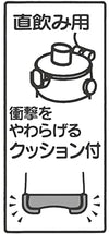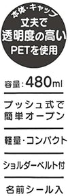 Dieses Produkt ist eine Trinkflasche mit direkter Trinkmöglichkeit, die mit einem Verschlussriegel ausgestattet ist, um das Zurückfallen des Deckels beim Trinken zu verhindern. Sie besteht aus robustem und hochtransparentem PET-Harz, was sie sowohl stabil als auch optisch ansprechend macht. Die Flasche verfügt über einen Druckknopfmechanismus, der das Öffnen erleichtert. Sie ist leicht und kompakt, sodass sie auch von Kindern leicht getragen werden kann. Die Flasche wird mit einem Schultergurt und einem Namensaufkleber geliefert, was zusätzlichen Komfort und Personalisierung bietet. Außerdem hat sie am Boden eine stoßdämpfende Polsterung für erhöhte Haltbarkeit. Bitte beachten Sie, dass diese Flasche nicht für die Verwendung in Geschirrspülern oder Geschirrspüler/Trocknern geeignet ist.