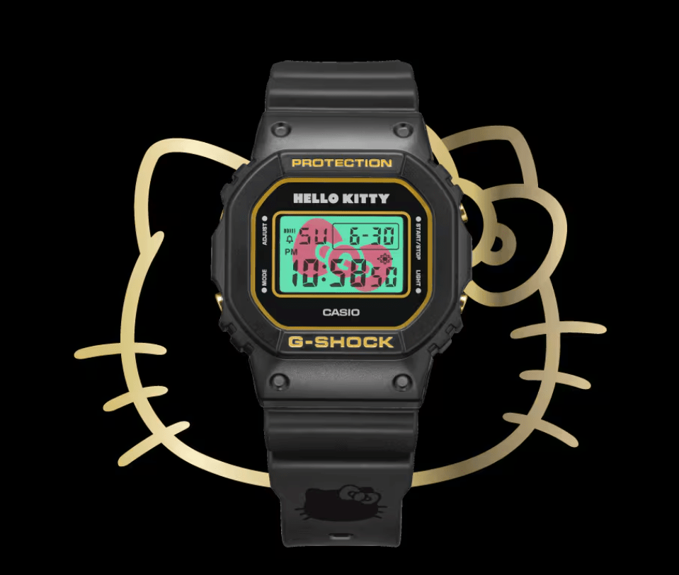 Diese besondere Zusammenarbeit feiert das 50-jährige Jubiläum zweier ikonischer Marken: Hello Kitty und G-SHOCK. Die Uhr besticht durch ein komplett schwarzes Gehäuse mit goldenen Akzenten an der Schnalle, d...