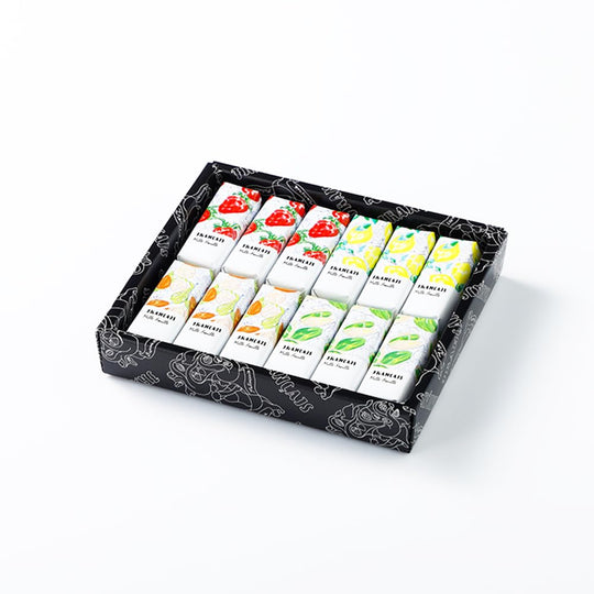 - **Enthaltene Geschmacksrichtungen**: - Erdbeere (enthält Weizen, Milchprodukte, Sojabohnen, Pfirsich) - Zitrone (enthält Weizen, Milchprodukte, Sojabohnen; aromatisiert mit wein-infundierter kandierter Zitronenschale) - Pistazie (enthält Weizen, Milchprodukte, Mandeln, Soja) - Gianduja (enthält Weizen, Milchprodukte, Mandeln, Soja) - **Allergeninformationen**: Hergestellt in einer Anlage, die auch Produkte verarbeitet, die Walnüsse und Eier enthalten. - **Haltbarkeit**: 80 Tage ab Herstellungsdatum (auf der Seite des Verpackungspapiers angegeben). - **Lagerhinweise**: An einem kühlen, trockenen Ort unter 25°C lagern. Direkte Sonneneinstrahlung, hohe Temperaturen und hohe Luftfeuchtigkeit vermeiden. Beachten Sie, dass Schokolade, die Temperaturen über 28°C ausgesetzt ist, eine weiße Oberfläche aufgrund von Fett- und Öltrennung entwickeln kann, was ihre Qualität nicht beeinträchtigt. - **Verpackung**: Dieses Produkt wird ohne Handtasche oder spezielle Verpackung geliefert. Geschenkoptionen sind für personalisierte Lieferpräferenzen verfügbar.