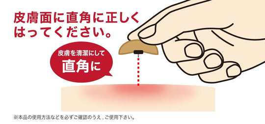 Setzen Sie eine einzelne Nadel auf den gewünschten Druckpunkt am Körper, um Bereiche mit Schmerzen oder Steifheit zu behandeln. Vermeiden Sie die Anwendung auf Bereichen mit Wunden oder Ekzemen. Nach der Anwendung falten und wickeln Sie das Zentrum des stoffunterlegten Klebebands, um die Nadel zu verdecken, und entsorgen Sie sie als nicht brennbaren Abfall. Nicht in öffentlichen Bädern oder Schwimmbädern verwenden.