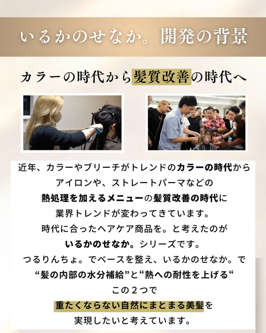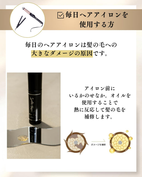 Wir präsentieren "Iruka Senaka", eine innovative Leave-in-Behandlung, die entwickelt wurde, um Hitzeschäden und Feuchtigkeitsverlust im Haar zu bekämpfen. Dieses Haaröl, abgeleitet vom beliebten "Tsurururincho"-Shampoo, ist angereichert mit Schönheitswirkstoffen, die das Haar schützen und reparieren, sodass es natürlich glänzend bleibt. Die Formel enthält Astaxanthin, bekannt für seine Vorteile in der Pflege von reifem Haar, und ist ideal für Personen mit geschädigtem oder blondiertem Haar oder die häufig Hitzestyling-Tools verwenden. Erleben Sie Salonqualität zu Hause, mit jeder Anwendung fühlt sich Ihr Haar seidiger an.