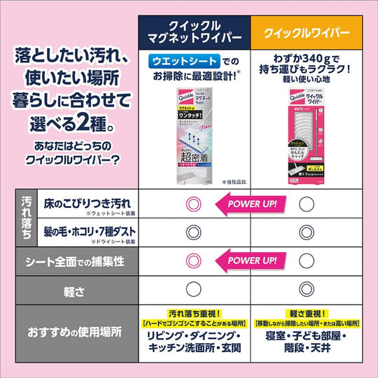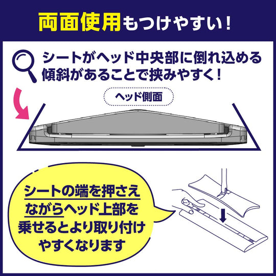 This innovative wiper features a magnetic design for easy one-touch sheet attachment, ensuring the sheet fits snugly and does not shift easily. The head adheres to the floor 126% more effectively, making it ideal for wet sheets. It efficiently wipes off sticky stains without the need for scrubbing, thanks to its optimally designed head. The back of the head has a multi-collection structure that collects dirt from any direction. This product is recommended for use on flooring, cushion floors, and front doors. The handle can be shortened for convenient use on screen doors.
