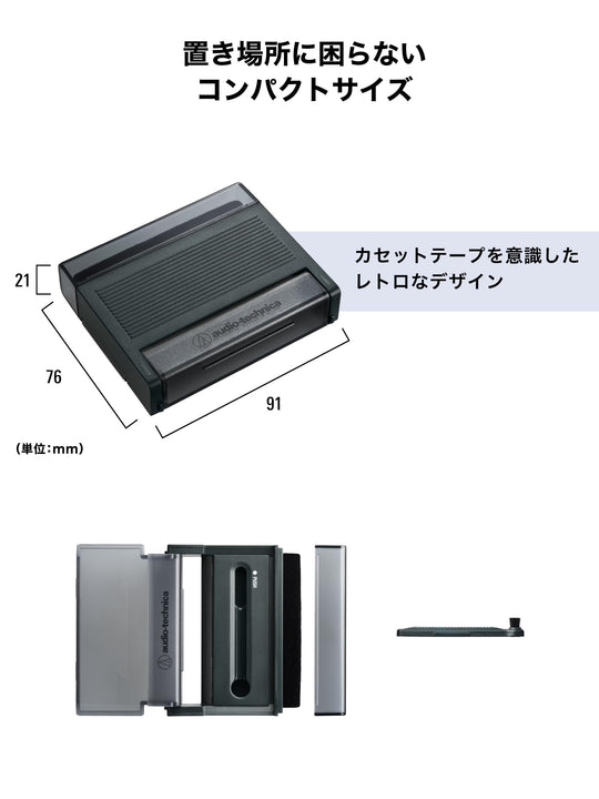 - **Record Cleaner**: Designed to minimize contact with the record surface, it gently wipes away dust and fibers, reducing unwanted noise and keeping your vinyl in pristine condition. The capped velvet ensures cleanliness even when not in use. - **Stylus Cleaner**: Features a nylon brush that thoroughly removes dust and fibers from the stylus tip, preventing damage to your records. Its toothbrush-shaped design makes it easy to use, even with record players that have limited space between the needle and the desk. - **Jacket Stand**: A foldable stand that allows you to display the jacket of the record you're currently playing, enhancing your listening experience. - **Compact Design**: Small enough to fit in the palm of your hand, it saves storage space. The square shape and translucent coloring blend seamlessly with any room decor. The retro design evokes nostalgia, reminiscent of handling cassette tapes.