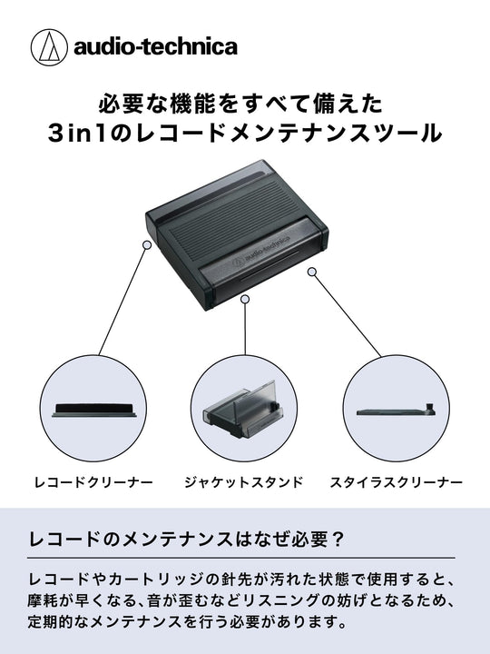 Audio-Technica AT6028 3in1 Vinyl Record Cleaner Maintenance Kit with Anti Static Brush and Stand