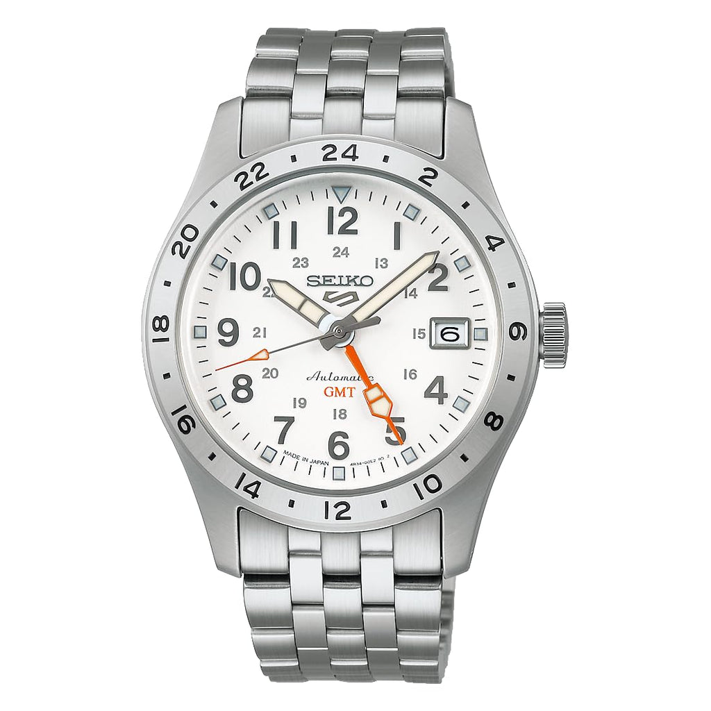 Seiko 5 Sports Field GMT SBSC009 is a flagship evolution of the Field design, keeping the familiar proportions while upgrading the caliber. A fixed bezel with 24-hour markings and a bold, pentagonal GMT hand...