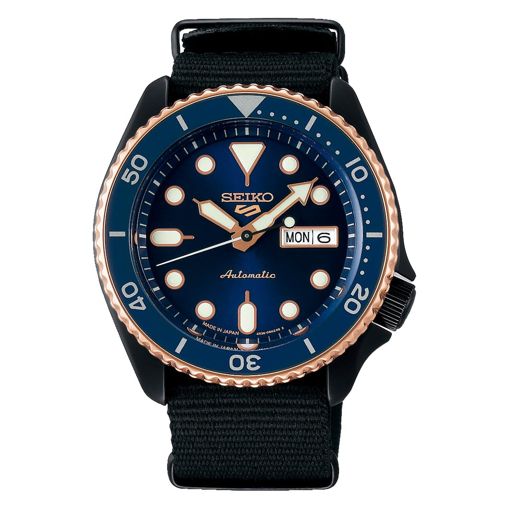 From the popular SNXS Series, this gold-accented model complements classic style—think blazer gold buttons—while its deep-toned dial with gold hands and indices delivers a refined, elegant look.
