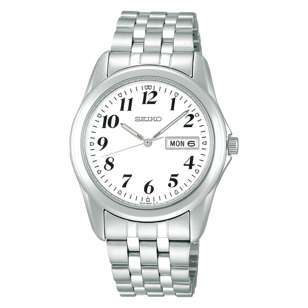 This product is a practical model from SEIKO that combines basic functions with a standard, timeless design. It is a battery-powered quartz watch that comes with a box, an instruction manual, and a warranty ...