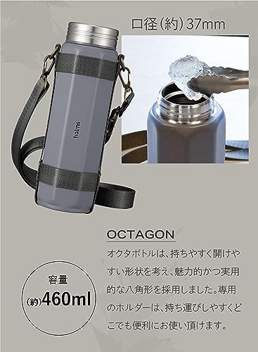 The Octabottle features a simple yet elegant octagonal design that is easy to hold and open, making it user-friendly for everyone, including women. Its unique shape not only adds to its aesthetic appeal but also ensures the bottle stays in place when laid on its side, preventing spills. The bottle comes with a special holder that has an adjustable length, allowing it to be comfortably slung over the shoulder for easy transport. This holder is also detachable, offering versatility in how the bottle can be carried.