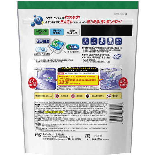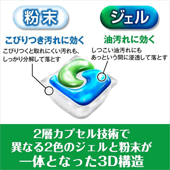 This product is a unique blend of gel and powder, combined in a 3D structure to effectively remove the three major types of stains that are typically difficult to eliminate in the dishwasher. These include sticking stains from rice and other foods, gritty oil stains, and accumulated stains from tea. The dual-layer capsule technology from P&G creates a 3D structure that combines two different colored gels and powders into one, providing a powerful cleaning solution that eliminates the need for re-washing.
