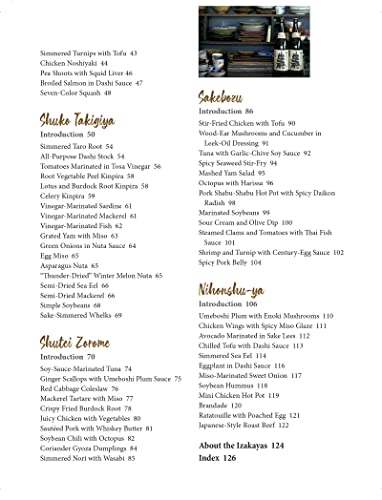 This cookbook features 74 recipes from six top Tokyo Izakayas, including main dishes and sides like Shabu Shabu with Pork and Daikon Radish, Chicken Wings with Miso Glaze, Sauteed Pork with Whisky Butter, and Gyoza Dumplings. Each recipe is complemented by full-color photographs and detailed cooking instructions. The book also provides a glossary of key ingredients essential for authentic replication of the dishes.