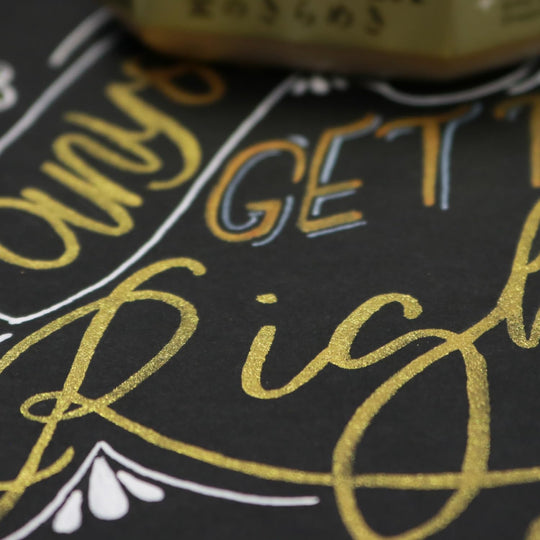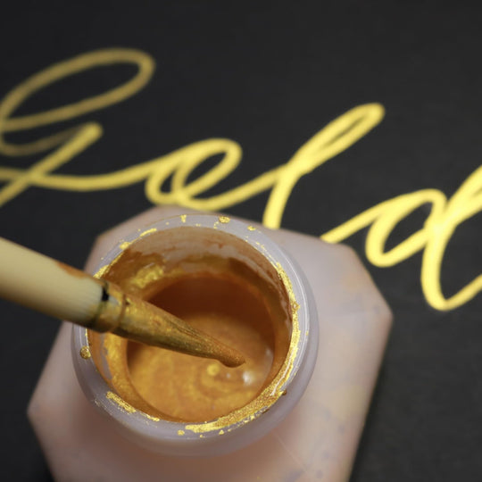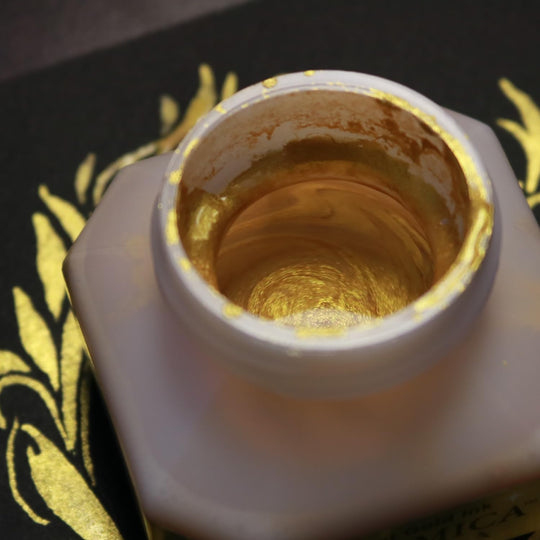 This is a sparkling, gold-colored calligraphy fluid designed to deliver vibrant, eye-catching results. Its excellent pigmentation ensures that your writing stands out beautifully, even on dark-colored paper. Ideal for artistic projects, this fluid is especially recommended for creating elegant New Year's cards and other decorative writing tasks.
