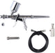 This airbrush is designed for both men and women, offering a user-friendly experience for painting large areas. Made from durable resin, it features a trigger mechanism that eases finger strain during extended use. The airbrush includes two interchangeable nozzle caps, allowing users to switch between normal and wide spraying patterns, making it versatile for various applications. An air-up mechanism ensures stable performance even at low air pressure, enhancing work efficiency. The Procon BOY model includes Teflon-coated needle packing and a double-action system, enabling precise control over paint flow for diverse artistic expressions. A needle stopper allows for single-action use, adding to its adaptability.