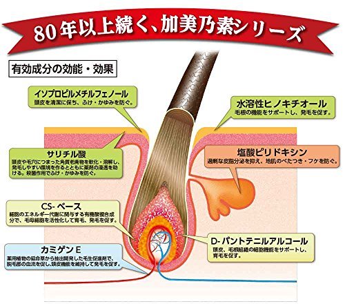 This hair restorative is primarily designed to prevent hair loss. The well-balanced formula, featuring the complex action of seven active ingredients, regulates scalp and hair root functions to prevent dandruff, itching, and hair loss, ensuring healthy hair. It is fragrance-free and classified as a quasi-drug. The product is part of the long-established Kaminomoto A series, known for its effectiveness in addressing various stages of thinning hair and hair loss symptoms. The series includes hair restorers, hair growers, and hair regrowth promoters, each offering comprehensive medicinal effects.