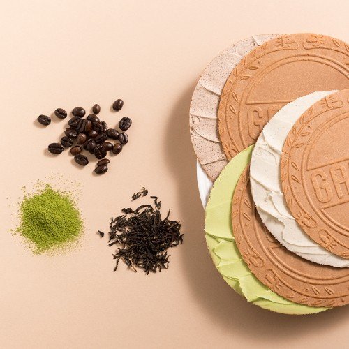 The product name "Gaufre au Goutte" means "Gaufre for enjoying snack time. The Gaufres, which represent Japanese and Western teas, are made with a crispy, savory, thinly baked dough and sandwiched between black tea, green tea, and coffee creams. Each aroma spreads in your mouth, creating a moment of relaxation.