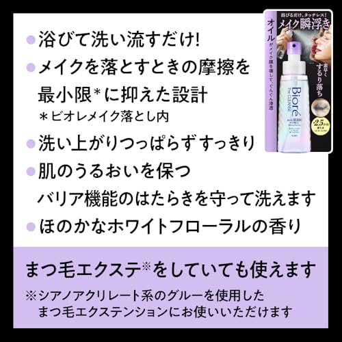 Experience effortless makeup removal with our innovative touchless formula. Simply take a bath, and watch as makeup instantly floats away. This product effectively breaks down makeup films and penetrates the skin, ensuring even stubborn makeup base and waterproof mascara are thoroughly removed. Enjoy a comfortable, irritation-free wash that maintains your skin's moisture-retaining barrier. Infused with a subtle white floral fragrance, this product is also safe for use with eyelash extensions that utilize cyanoacrylate glue. Save time and simplify your beauty routine with this efficient solution.