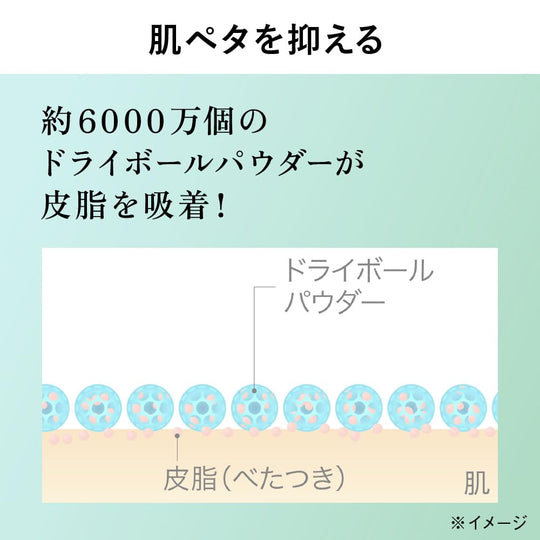 This innovative product is designed to prevent shine and stickiness on the face, décolleté, nape of the neck, and the entire body. It is formulated to be resistant to the formation of comedones, which are the source of acne. The product contains beauty essence ingredients, such as sodium hyaluronate, for moisture retention. It features sebum-absorbing powder that prevents shine and includes 60 million dry balls of powder in a single application to suppress stickiness and prevent flaky hair and skin.