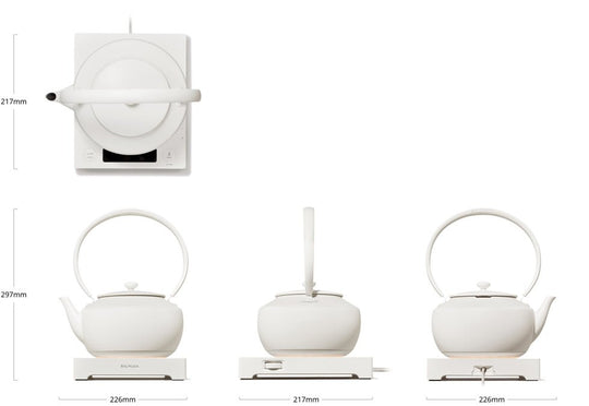 La MoonKettle es una tetera eléctrica que incorpora la belleza funcional de las teteras tradicionales, rediseñada para su uso moderno. Cuenta con control de temperatura para preparar bebidas a la perfección, una experiencia de usuario sencilla, y una combinación relajante de luz y sonido. Esta tetera crea momentos memorables en la vida diaria, mejorando el hábito global de disfrutar del té o el café para relajarse y rejuvenecer, ya sea por la mañana, por la tarde o por la noche. La MoonKettle combina herramientas tradicionales con un diseño contemporáneo, ofreciendo una experiencia placentera con sus sonidos operacionales, luz parpadeante, y un vertido suave. También incluye un botón de MANTENER para conservar el calor durante 30 minutos, haciéndola versátil para diversos usos.
