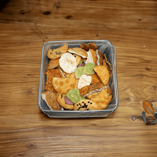 Esta mezcla de 1kg de galletas de arroz rajado hechas de arroz Uruchi tiene un precio de ganga. Viene en ocho sabores diferentes, incluyendo salsa de soja, salsa de soja tamari, ensalada sen, azúcar blanco, té verde, sésamo, pimiento chili y galletas de arroz grueso. La planta de fabricación de Soka Senbei es la única que ofrece estos sabores únicos. Puedes elegir qué sabores te gustaría recibir. Este surtido es popular tanto para uso doméstico como para regalar.