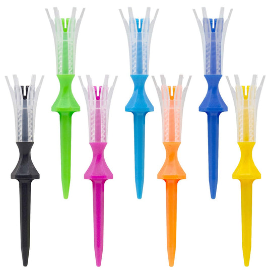 Este innovador tee ofrece un ajuste de altura en 7 pasos con un total de 6 mm de variabilidad, permitiendo una personalización precisa. El eje central rígido, o soporte, proporciona una excelente estabilidad, asegurando que la bola esté bien posicionada y facilitando el proceso de colocarla en el tee. El diseño garantiza que la bola empuje directamente sobre el eje central, mejorando la estabilidad y el rendimiento general de tus golpes desde el tee.