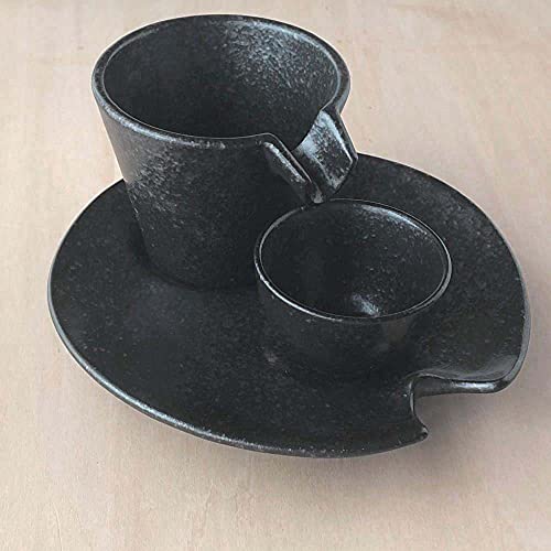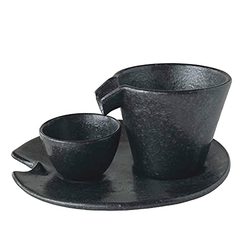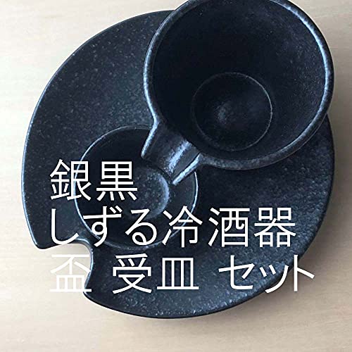 Set de copa y platillo para sake frío Shizuru plata y negro