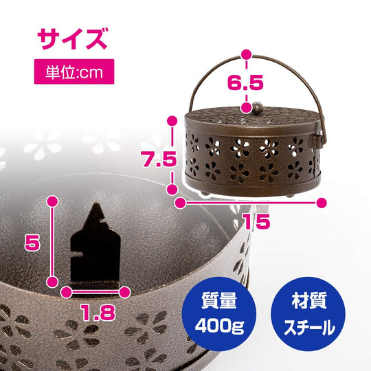 Ang maingat na dinisenyong platito na ito ay may lalim na 1 cm upang maiwasan ang pag-apaw ng abo, kahit na ito ay maitulak ng hangin o galaw. May kasamang maginhawang hawakan, madali itong dalhin at perpekto para sa paggamit sa mga hardin o panlabas na lugar. Gawa sa matibay na bakal, ito ay nangangako ng mahabang buhay at pagiging maaasahan. Ang tatlong paa ng platito ay nagbibigay ng katatagan, at ang timbang nito ay tinitiyak na mananatili itong nakatayo, na nagpapahusay sa kaligtasan.