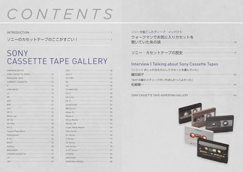 Kategorya ng Sony Cassette Tapes: - **METALLIC Series:** Kasama ang Metal-ES, Metal-S, Metal Master, Metal-XR, Super Metal Master, at iba pa. - **Fe-Cr POSITION Series:** DUAD. - **HIGH-POSITION Series:** CHROMI CASSETTE, CR, JHF, UCX, UCX-S, UX-PRO, Do, UX-MASTER, UX-S, UX turbo, HFⅡ, at iba pa. - **NORMAL Series:** MAGAZINE TAPE, COMPACT CASSETTE, LOW-NOISE, HF, AHF, BHF, CHF, HF-S, HF-ES, HF-PRO, HF-X, A-la?, EXIST, Vocal, WALKMAN, BASIC, at marami pang iba. Mga Modelo sa Ibang Bansa: - Mga natatanging modelo ng cassette tape na ibinebenta sa Hilagang Amerika, Europa, at iba pang rehiyon, na iba sa mga available sa Japan.