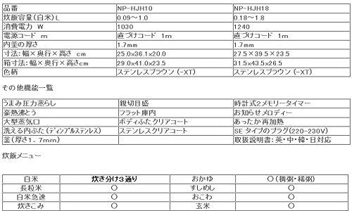 Zojirushi Rice Cooker 10-Cups 1.8L NP-HJH18 SE Plug Made in Japan