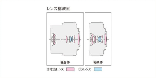 Konstruksyon ng lente 9 elemento sa 8 grupo (4 aspherical na elemento ng lente, 2 ED na elemento ng lente)