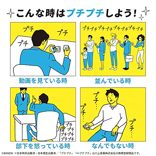 Le "∞Puchi Puchi", un produit populaire depuis 2007, a été retravaillé et considérablement amélioré en 2021. Ce jouet unique possède une structure de bouton spéciale qui piège l'air, offrant à l'utilisateur la sensation satisfaisante de faire éclater un vrai film à bulles. C'est un produit amusant et engageant conçu pour tous les genres.